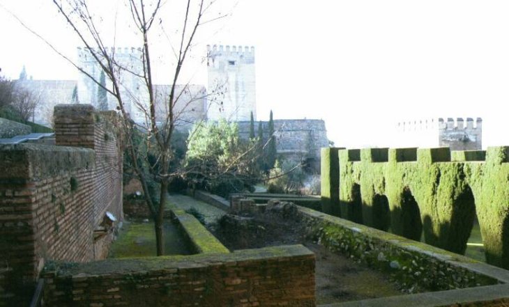 アルハンブラ宮殿:王宮庭より望むアルカサバ(Alcazaba)