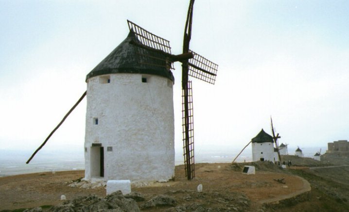 ラ・マンチャ地方に粉ひき用の風車が出現したのは、 1560〜1570年頃。当日、風がきつかったが回っていなかった。(使われ なくなって久しいので、あたりまえ)