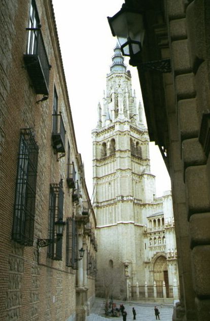 路地から望むゴシック様式のカテドラル(Catedral)。格式が高く内部の 写真撮影も不可。1226〜1493年築造