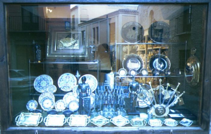 街の路地には、トレドの伝統工芸を売るみやげ店が点在 している