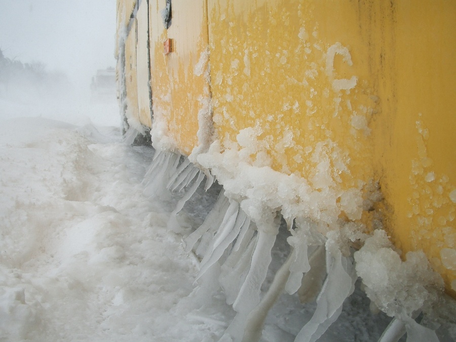 吹雪は止まず、事態は悪化の感。ガイドさん・添乗員さんが携帯電話であちこち連絡している模様、、、携帯の威力発揮。