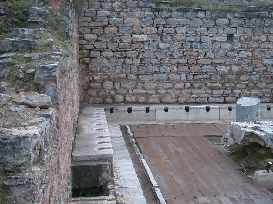 仕切りもないが、公衆トイレ。下には下水溝が設けられている。